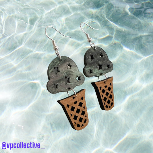 Green Galaxy Ice Cream Cone Dangle Earrings