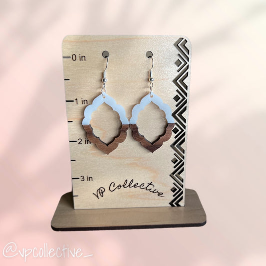White Acrylic Acrylic & Walnut Wood Scallop Earrings