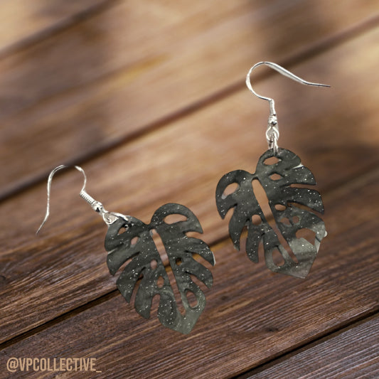 Matte Green Monstera Dangle Earrings