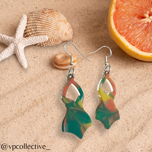 One Piece Swimsuit Dangle Earring - Tropical Vacation