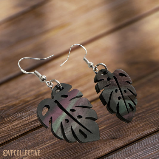 Monstera Aurora Borealis Dangle Earrings
