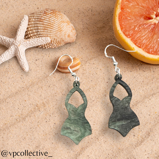 One Piece Swimsuit Dangle Earring - Matte Shamrock Green