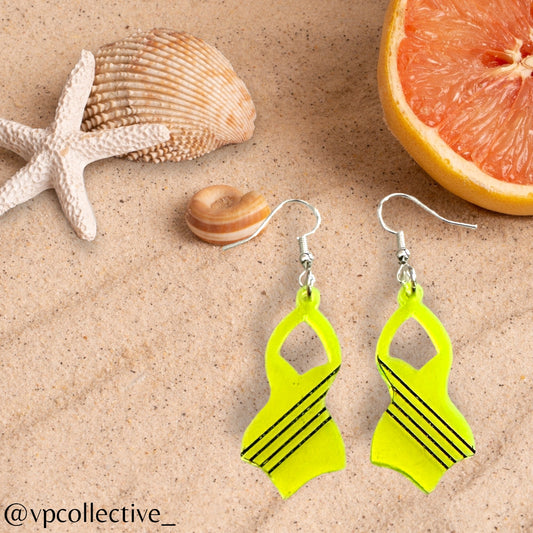One Piece Swimsuit Dangle Earring - Neon Yellow